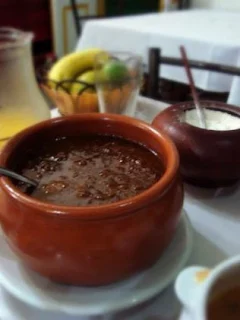 Coloque num prato fundo farinha de mandioca de boa qualidade, o barreado por cima e uma fatia de banana da terra.