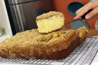 Misture os ingredientes para a farofa com as pontas dos dedos e distribua sobre a cuca, leve para assar em forno a 180 °C por cerca de 50 minutos.